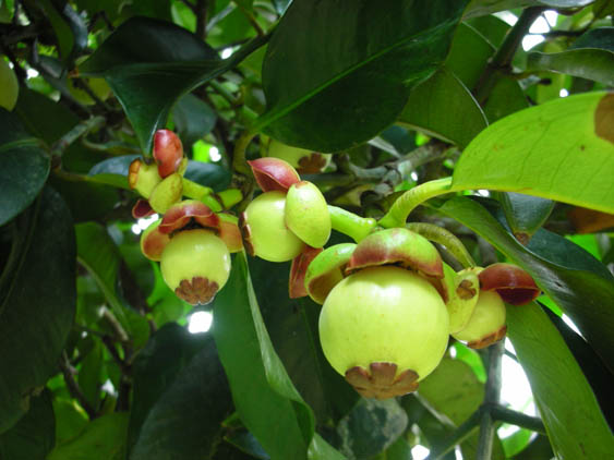 ลักษณะทางพฤษศาสตร์ : เป็นพรรณไม้ยืนต้นมีลำต้นตั้งตรงมีวามสูงประมาณ 7-12 เมตร กิ่งอ่อนเป็นเหลี่ยมผิวเปลือกลำต้นมีสีน้ำตาลคล้ำ และน้ำยางเป็นสีเหลือง ใบออกเป็นคู่ ลักษณะของใบเป็นรูปไข่หรือรูปรี ปลายใบแหลมโคนใบสอบเข้าหากัน ริมขอบใบเรียบไม่มีหยัก ผิวเนื้อใบเรียบเกลี้ยงเนื้อหนาใต้ท้งอใบเห็นเส้นใบชัด ก้านใบยาว ออกดอกเป็นดอกเดี่ยวหรือดอกคู่ ออกตามบริเวณปลายกิ่งลักษณะของดอก ดอกมีกลีบดอกและกลีบรองกลีบดอกอย่างละ 4 กลีบ กลีบรองกลีบดอกเป็นรูปมนโค้งมีสีเหลืองกลีบดอกเป็นรูปไข่ มีสีขมพูแก่ ผลมีลักษณะเป็นรูปกลมรีหรือแบนเล็กน้อย บริเวณขั้วผลมีกลีบรองดอกติดอยู่ พื้นผิวเปลือกเรียบเกลี้ยง เปลือกหนา ผลอ่อนมีสีเขียว ผลแก่หรือผลสุกก็จะเปลี่ยนเป็นสีม่ววงอมน้ำตาล ข้างในมีเมล็ด 6-8 เมล็ด มีเนื้อนุ่มสีขาว
